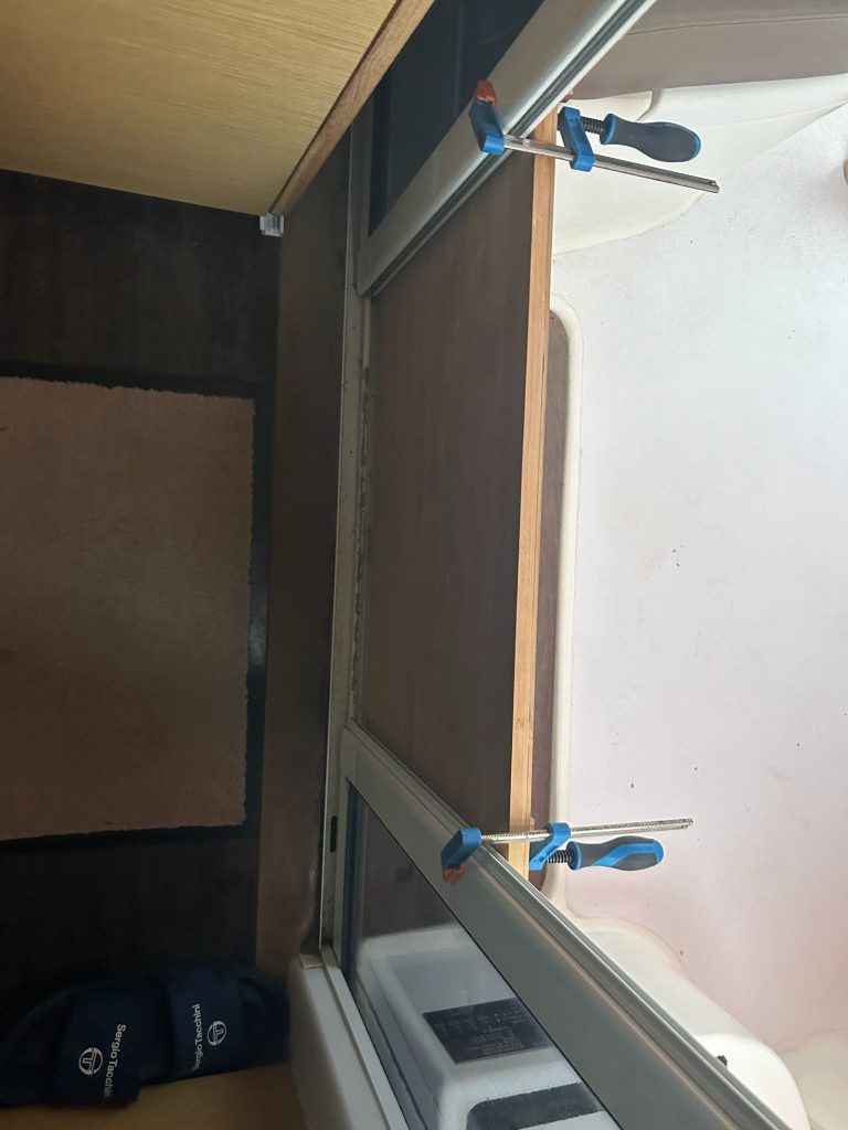 Notre cap vers le WP4 (16°21 N / 33°22 W) est maintenu malgré les vagues qui dévient le bateau sur bâbord. La mer frappe le plancher du carré, c’est impressionnant. Pour rappel, nous avons un décalage horaire de -3h par rapport à La Grande Motte. En fin de journée, à 17h20, nous avons dépassé les 400 NM de Mindelo en un peu plus de trois jours (jour 1 ayant commencé à 16h00). Petit bricolage avec Alex : j’ai décidé d’installer un batardeau à la porte d’entrée, par précaution, car l’eau arrive parfois jusqu’au panneau de pont de la cale moteur.