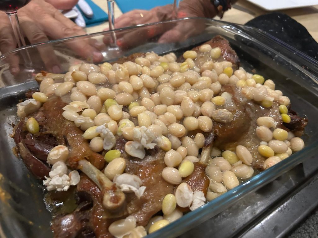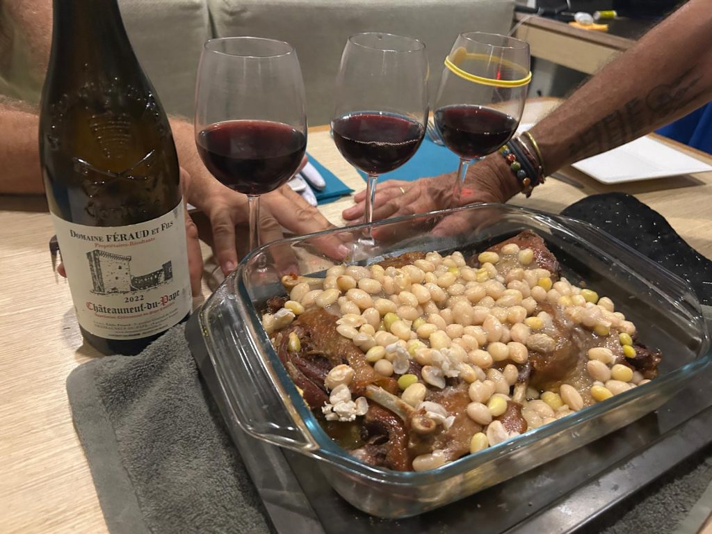Dom nous prépare un délicieux hachis parmentier au confit de canard.
